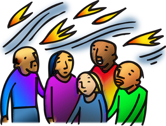 + Originally Pentecost was a Jewish thanksgiving-type festival celebrated seven weeks after Passover. On this particular Pentecost, however, the Holy Spirit is poured out upon the entire community of believers just as Jesus had promised and the scriptures had prophesied. Empowered by the Spirit, the entire community bears witness to God’s activity in multiple languages. +